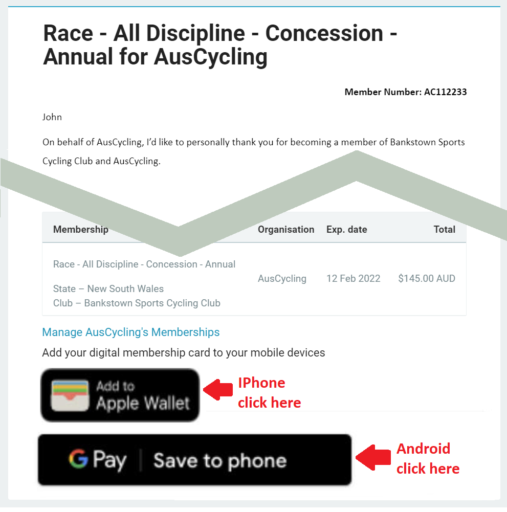 | VIA EMAIL You will see the option to add the card to your smartphone at the bottom of your welcome email. (Search for “TidyHQ” in email app) Make sure you open the email on your mobile device for this to work. |